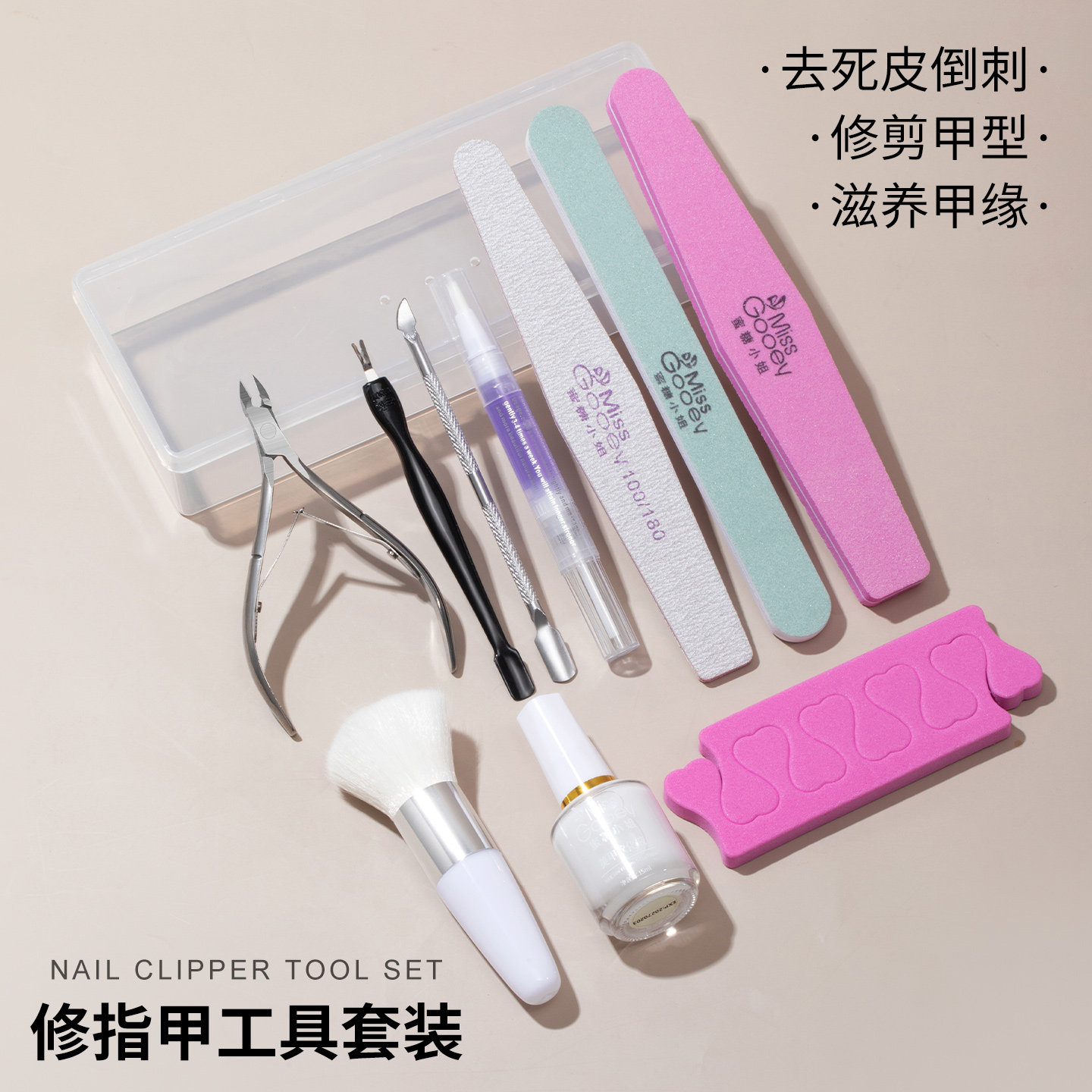 美甲去死皮剪修指甲工具搓条打磨条软化剂家用专业收纳盒套装全套