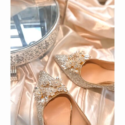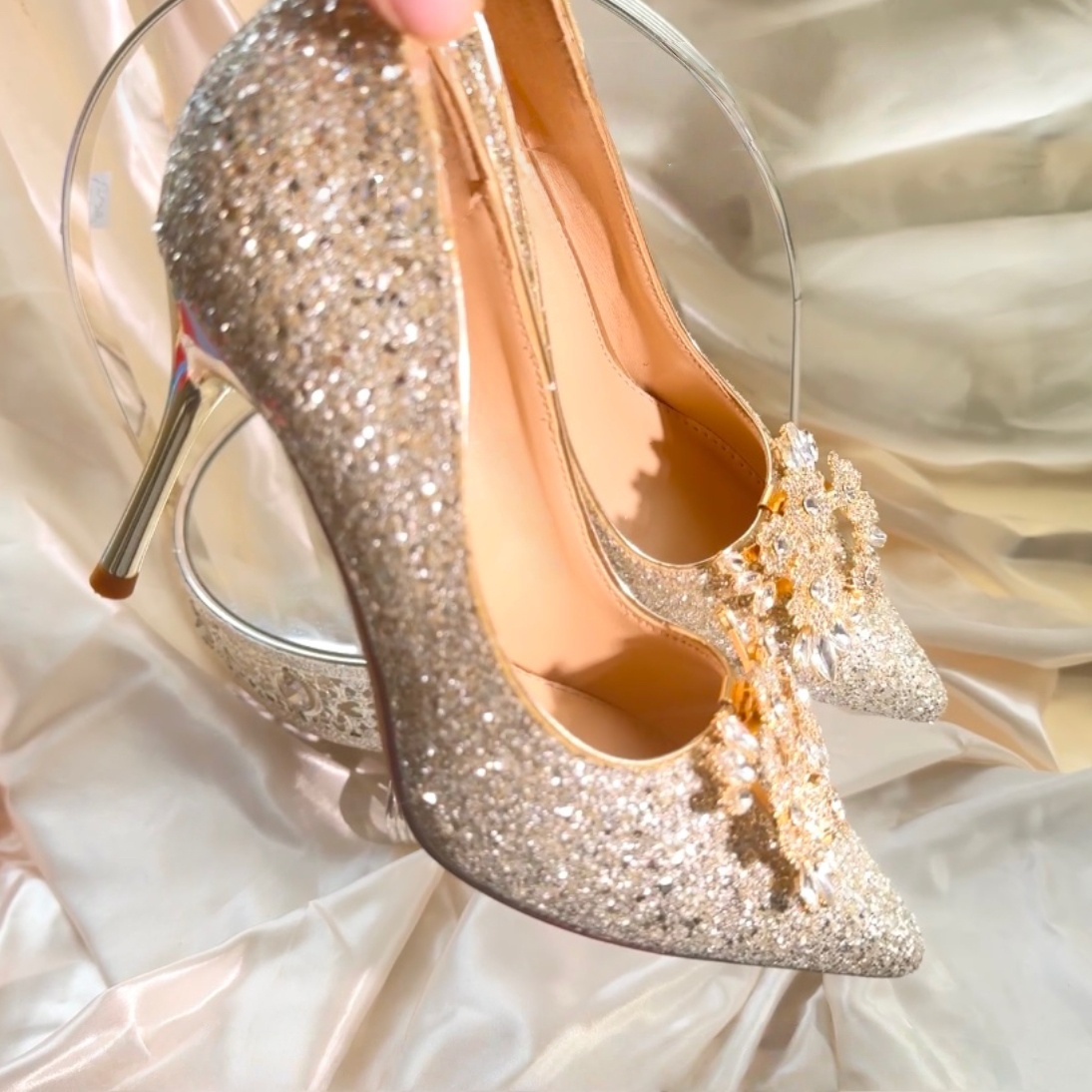 主纱婚鞋禾秀婚纱两穿新娘鞋女法式订婚亮片绝美高跟鞋不累脚单鞋