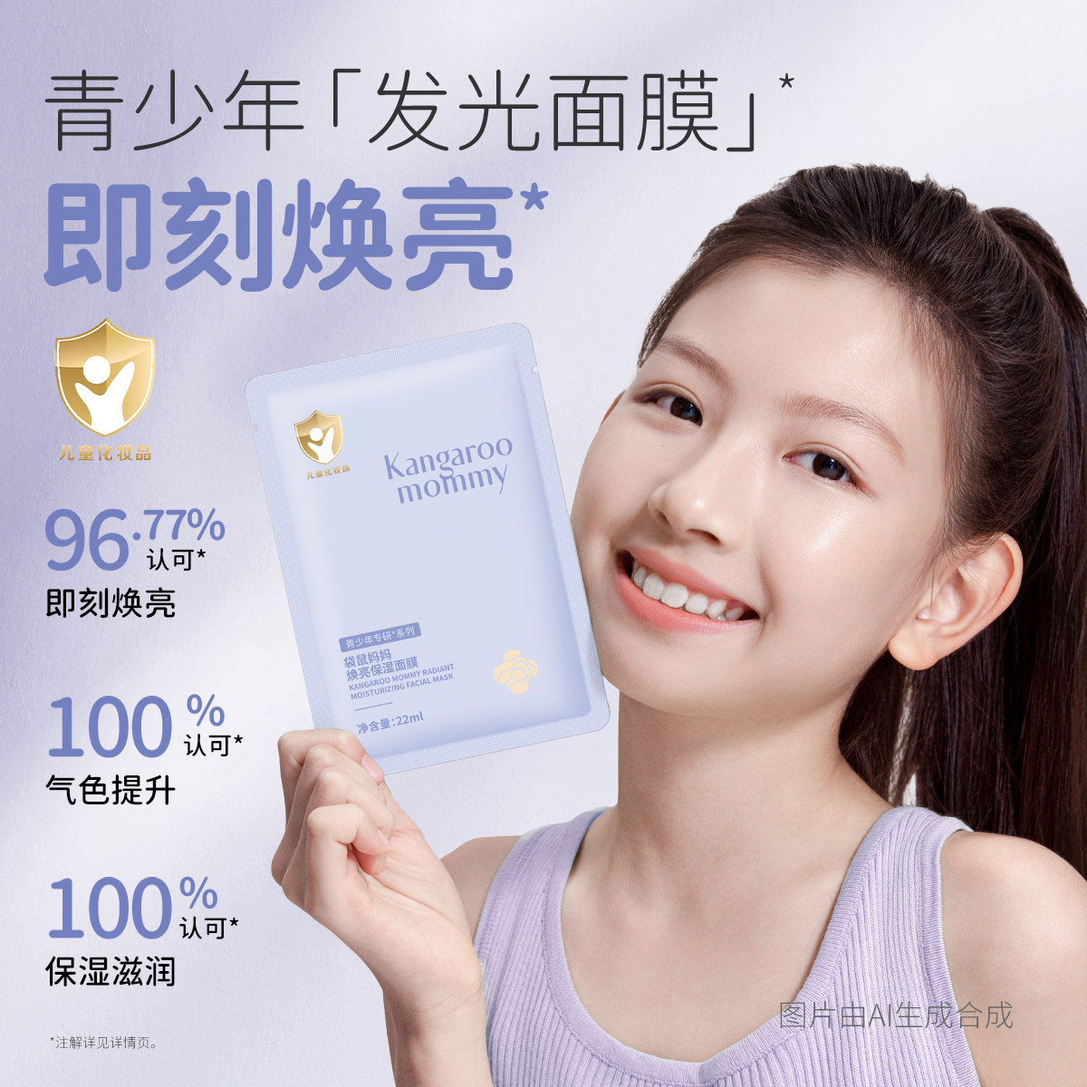 袋鼠妈妈青少年焕亮面膜补水男女孩儿童专用补水青少年学生护肤品