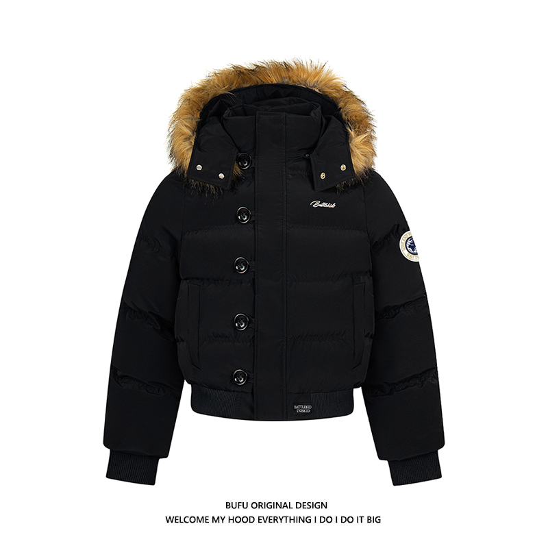 亿万少年BUFU南区菲奥娜毛领连帽棉服外套女冬加厚派克服短款棉衣
