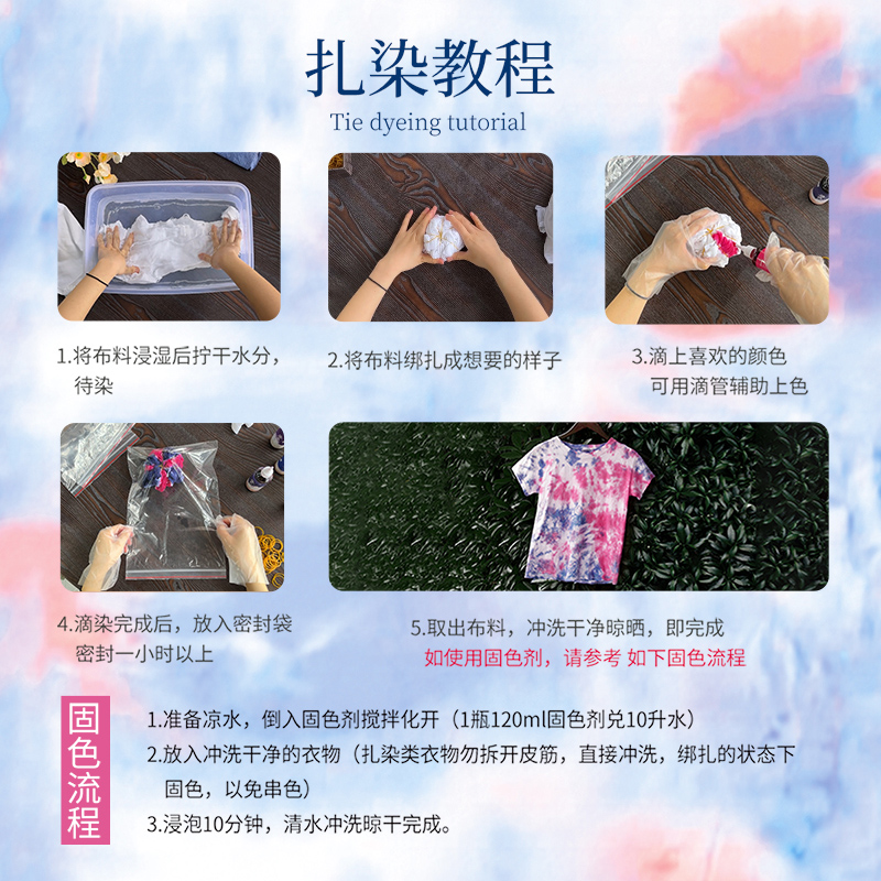扎染专用大瓶染料液体冷染免煮颜料儿童手工课DIY工具材料包套装