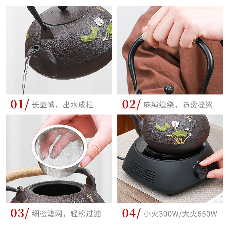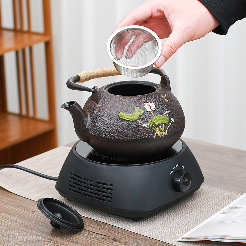 2025新款电陶炉围炉煮茶铸铁壶家用过滤日式老铁壶煮茶器具烧水壶