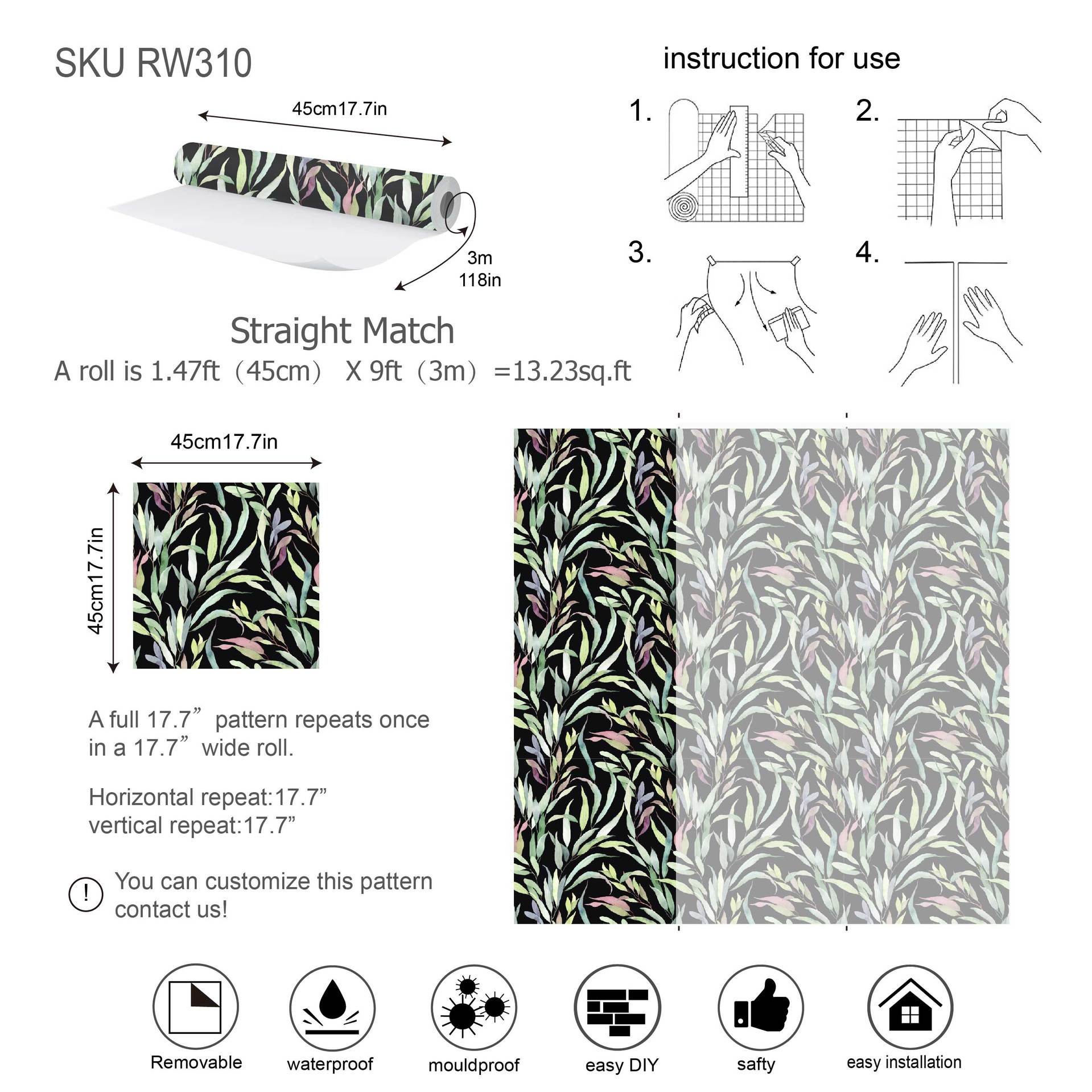 彩色叶子自粘墙纸防水防污临时壁纸宿舍改造磨砂触感背景墙壁画
