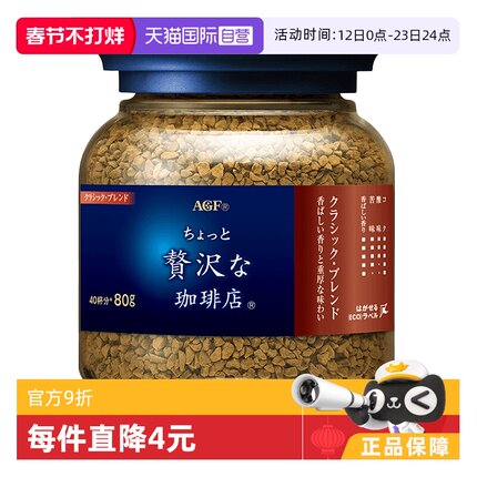【自营】日本agf咖啡蓝棕蓝金黑咖啡速溶咖啡无蔗糖冻干咖啡粉80g