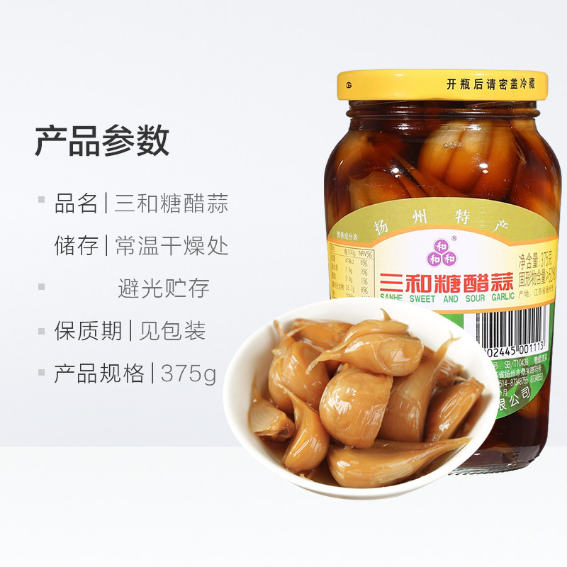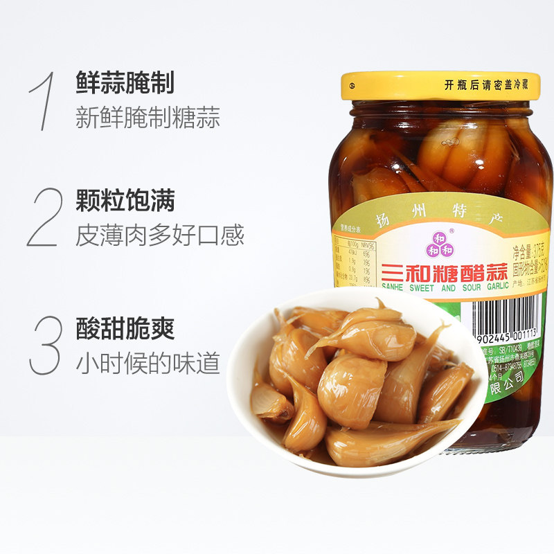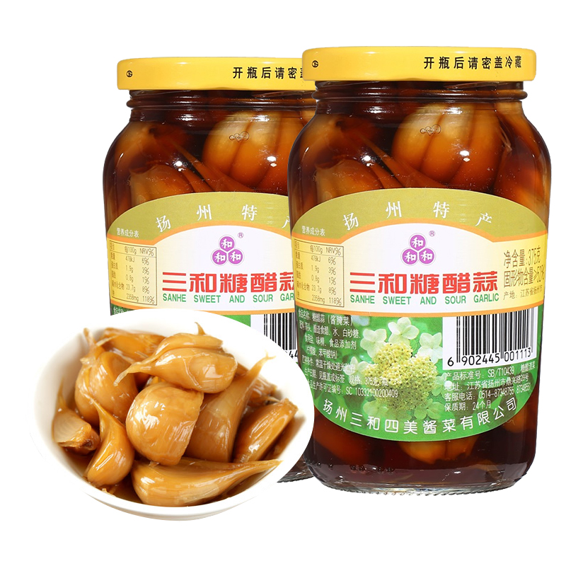 中华老字号 三和四美糖醋蒜375g*2瓶腊八蒜头下饭菜咸菜火锅解腻