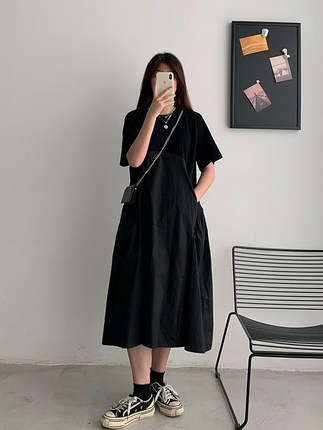 大码女装短袖A字T恤连衣裙2025夏季新款宽松显瘦遮肉休闲t恤长裙