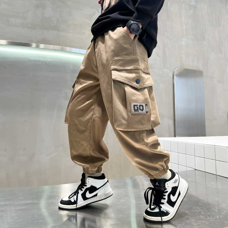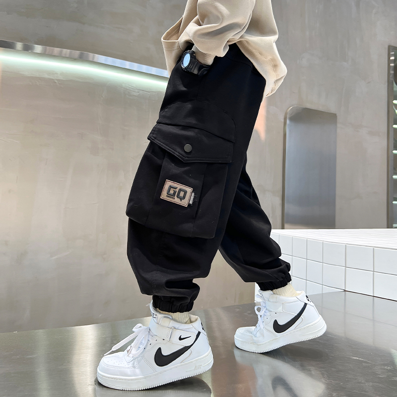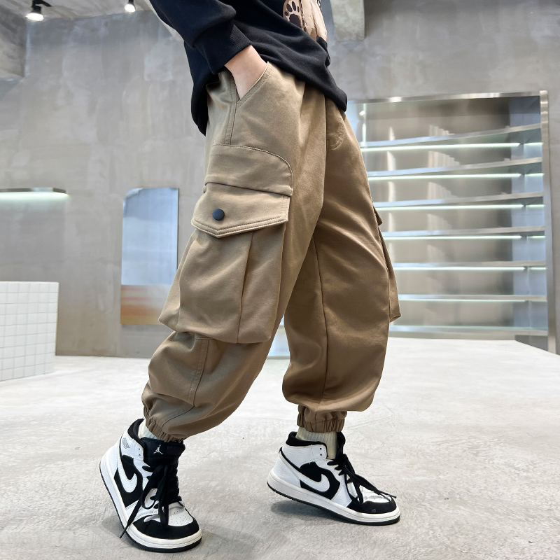 儿童工装裤春秋冬2025新款潮男童裤子一体绒加厚中大童休闲裤炸街