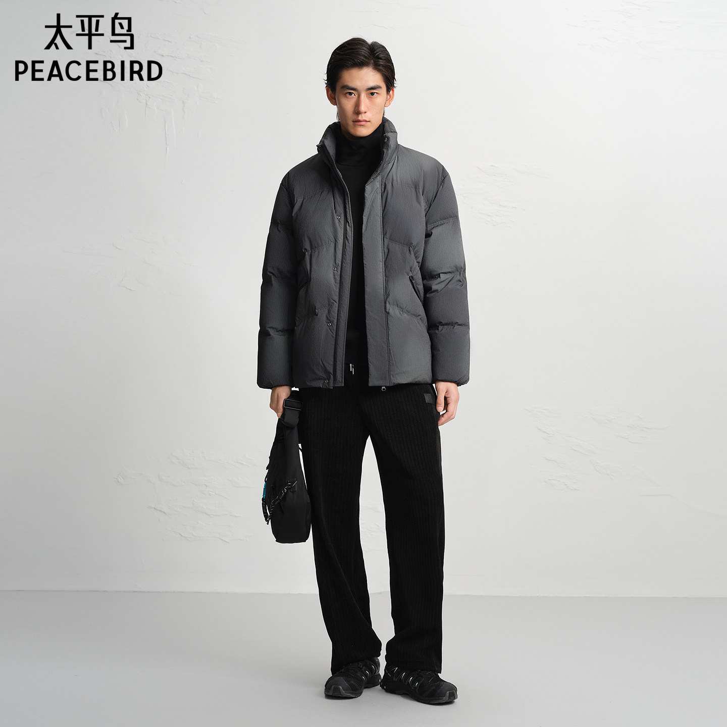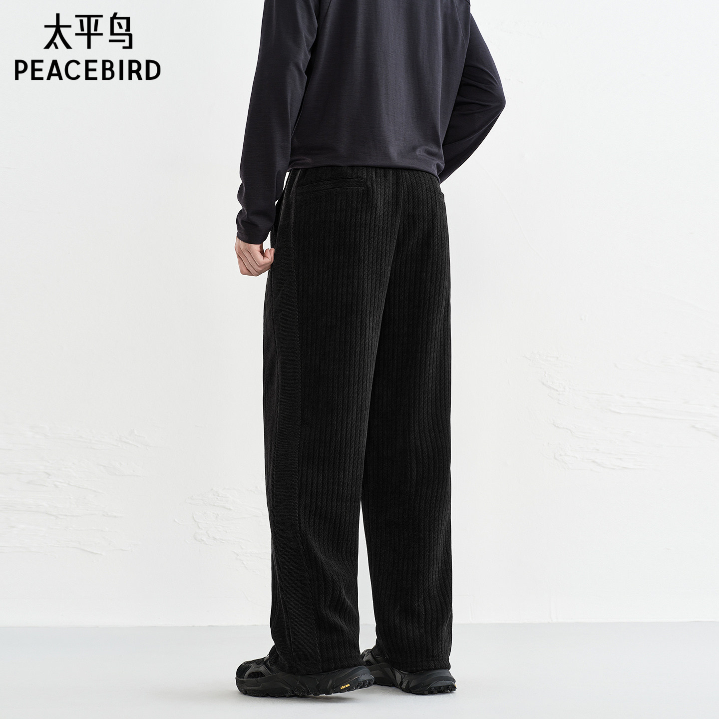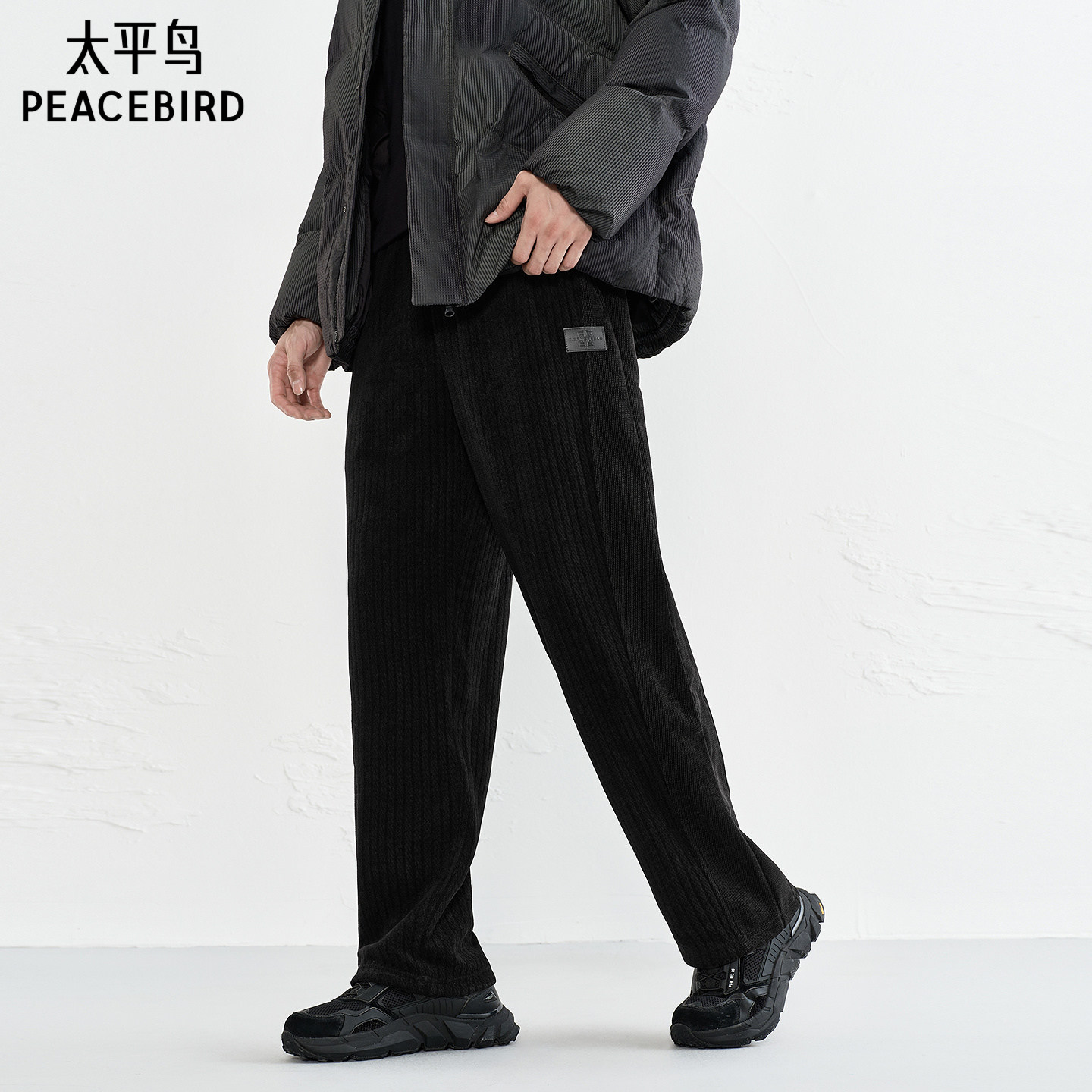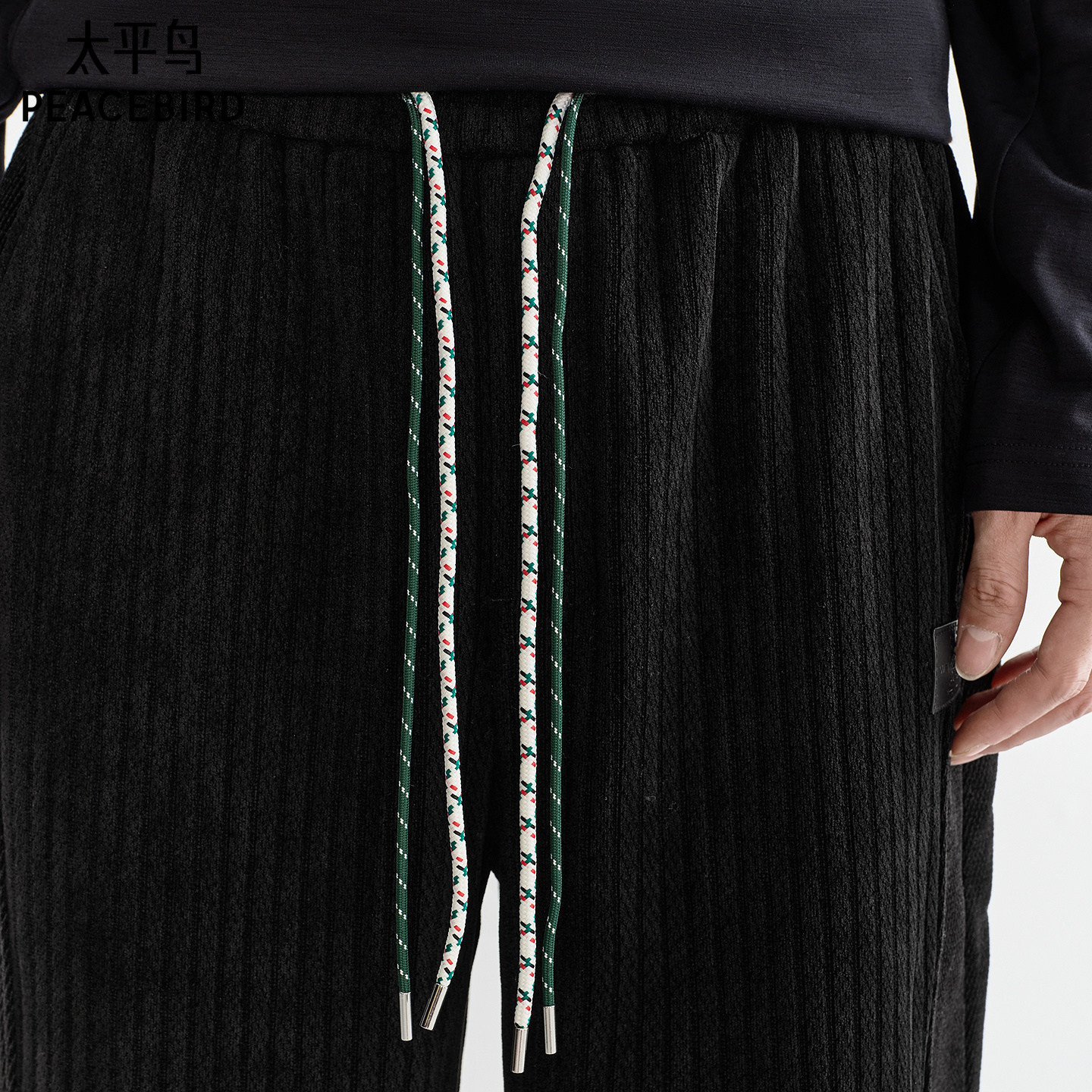 太平鸟男装 灯芯绒保暖休闲裤秋季撞色抽绳潮流潮牌长裤