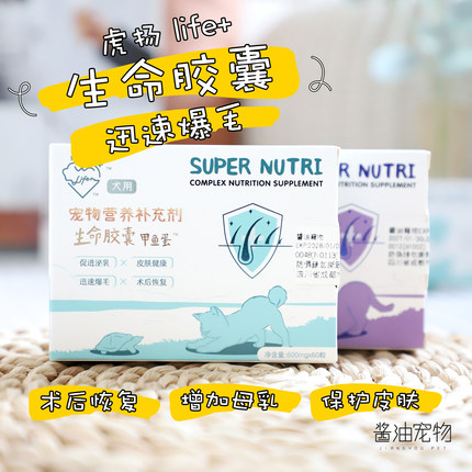 台湾虎扬Life+生命胶囊 爆毛丹甲鱼蛋猫狗术后康复孕期营养品60粒