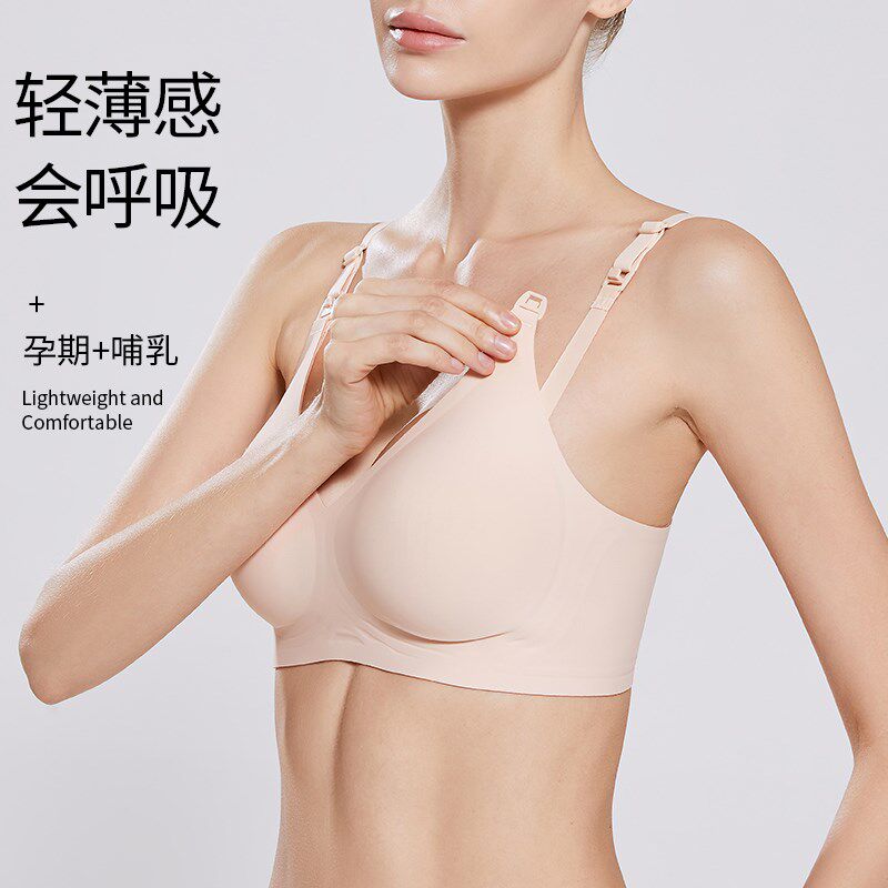 哺乳内衣一片式前开扣聚拢防下垂产后喂奶专用怀孕期孕妇无痕文胸