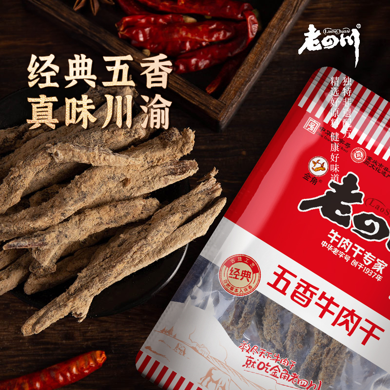 【下拉享优惠】金角老四川五香牛肉干手撕风干条休闲零食特产小吃