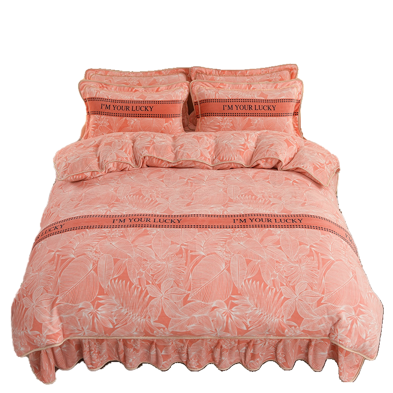秋冬加厚牛奶绒四件套加密双面绒亲肤保暖法兰绒珊瑚绒床裙款被套