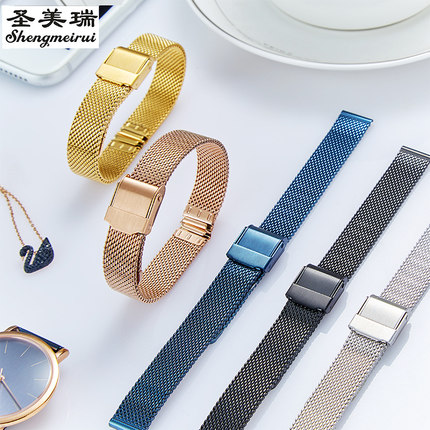 不锈钢表带超薄钢带适配CK罗西尼DW阿玛尼精钢金属女表链8 10 14