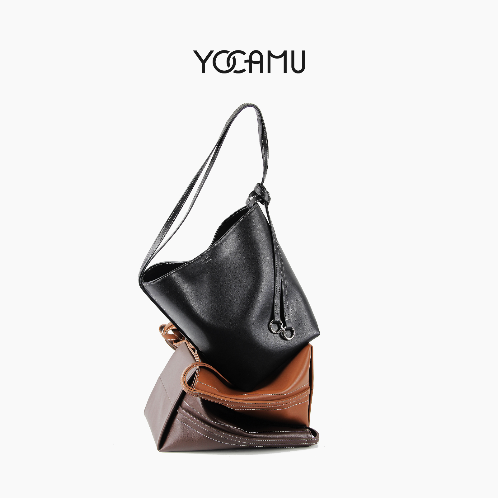 YOCAMU真皮水桶包女单肩斜挎包2025新款大容量通勤女包高级感多用