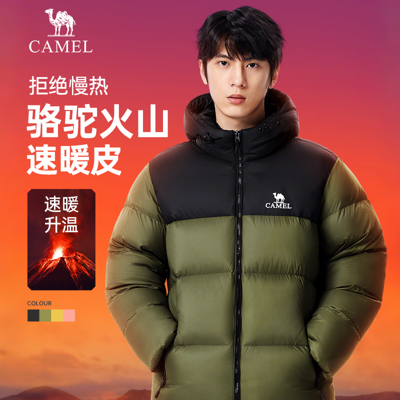 骆驼火山羽绒服防泼水白鸭绒冬季男女款加厚户外防寒冬季面包