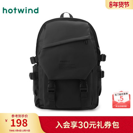 热风2024年秋季新款男士涂层双肩包户外运动出游大容量纯色背包