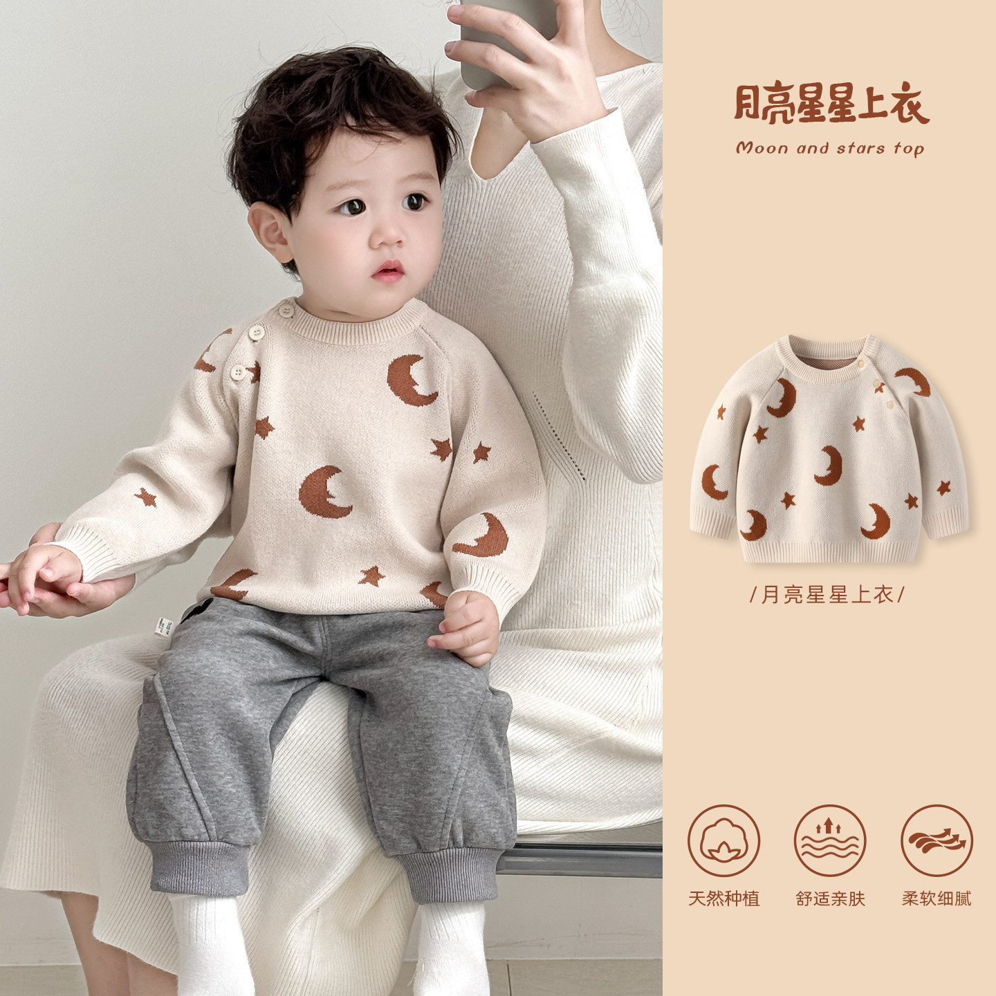 婴儿秋冬套装男宝宝毛衣拜冬两件套冬装男童针织儿童加厚打底衣服