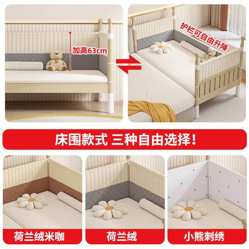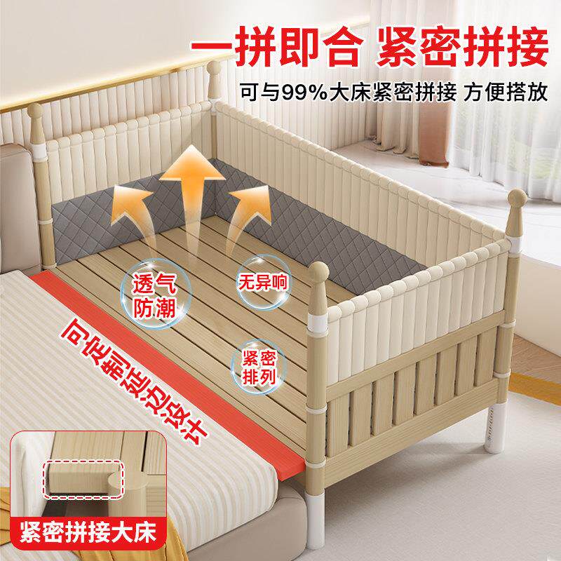 实木儿童拼接床婴儿床定制高护栏宝宝床大床加宽床拼接床边可升降