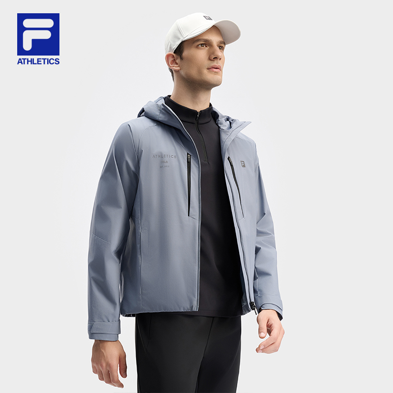 FILA 斐乐官方男士冲锋衣2024冬季新款健身运动基础防水连帽外套