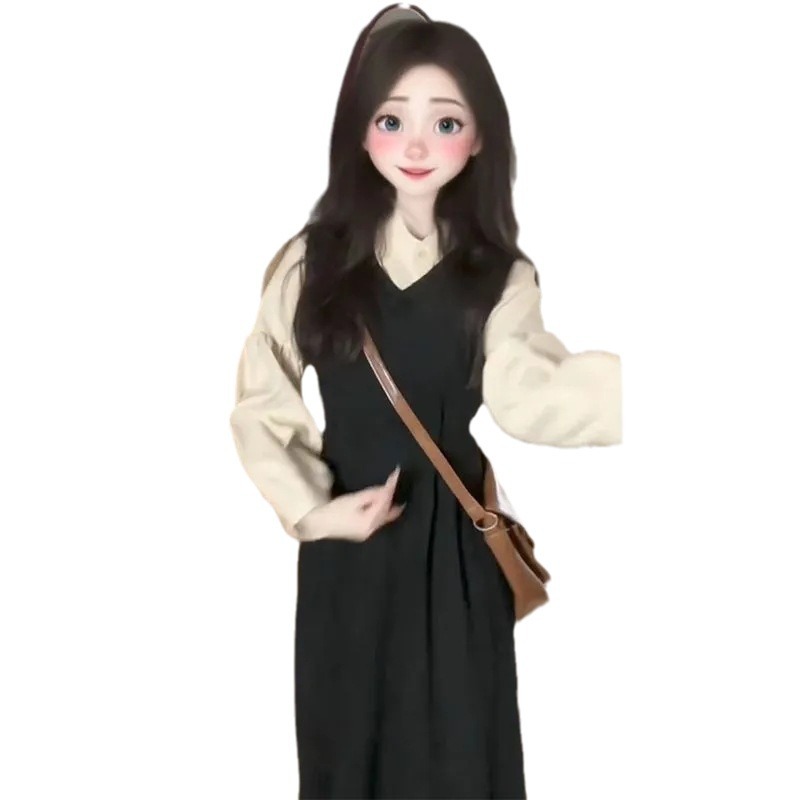 背带裙两件套女装春秋季2025年新款连衣裙小个子减龄显瘦黑色