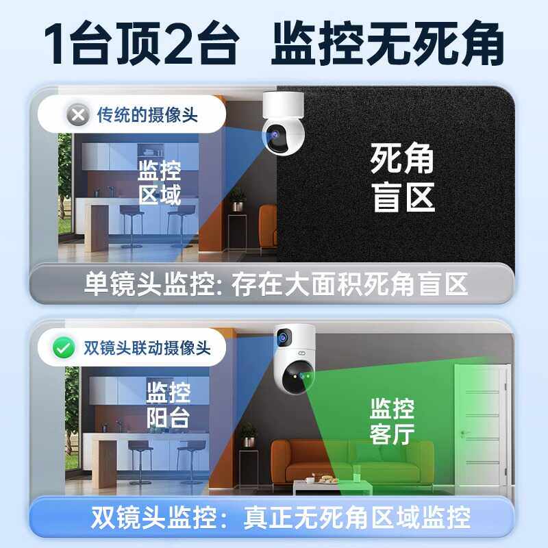 乔安室内摄像头监控夜视高清双画面手机远程监控器家用无线带语音