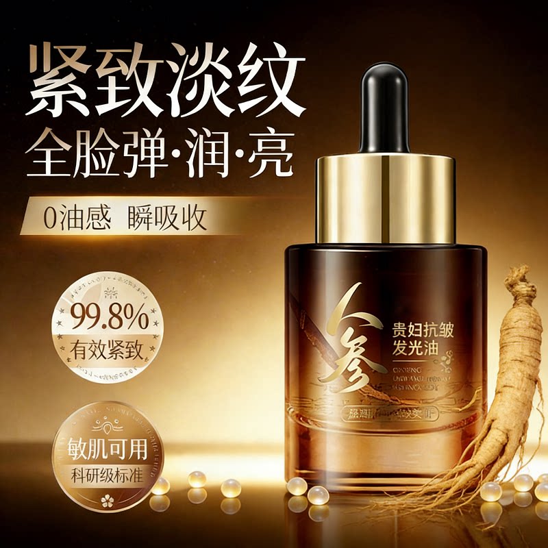 人参精华油紧致抗皱抗衰淡纹角鲨烷油养肤精华面部护肤老官方正品