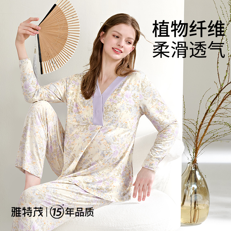 [很柔软!送胸垫]优可丝月子服夏秋孕妇睡衣产后喂奶怀孕哺乳衣