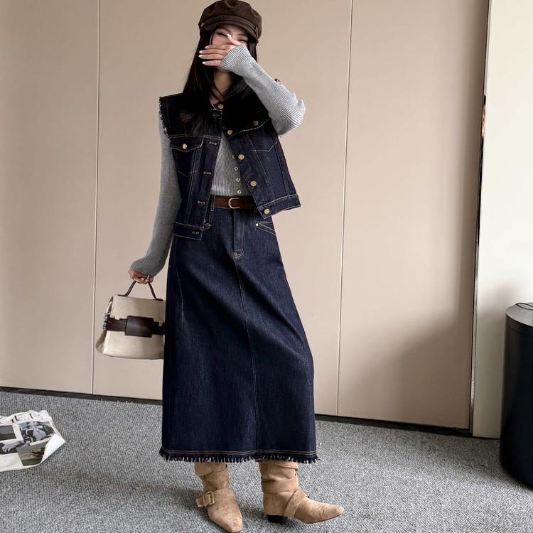 2025秋季新款牛仔半身裙女百搭显瘦休闲直筒裙中长款毛边