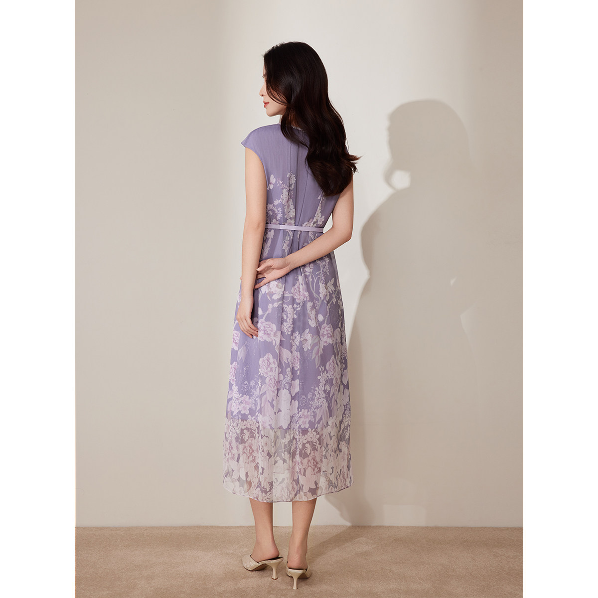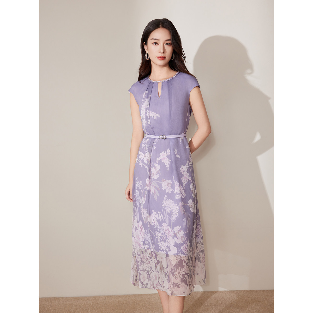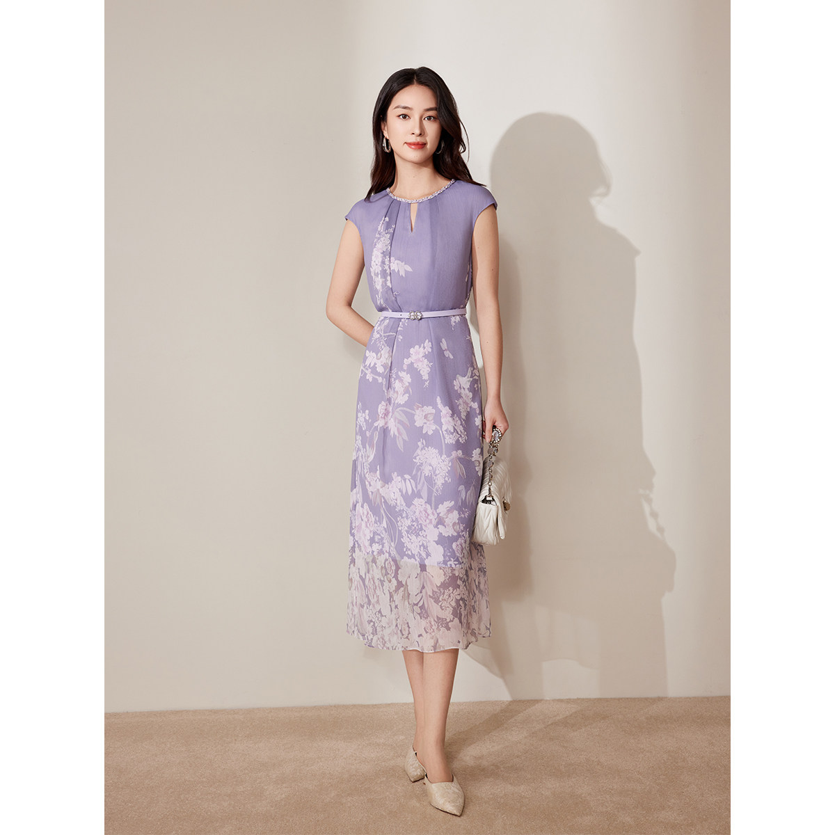 【浪漫度假风】BBLLUUEE/粉蓝衣橱2025夏装新款定位印花连衣裙女