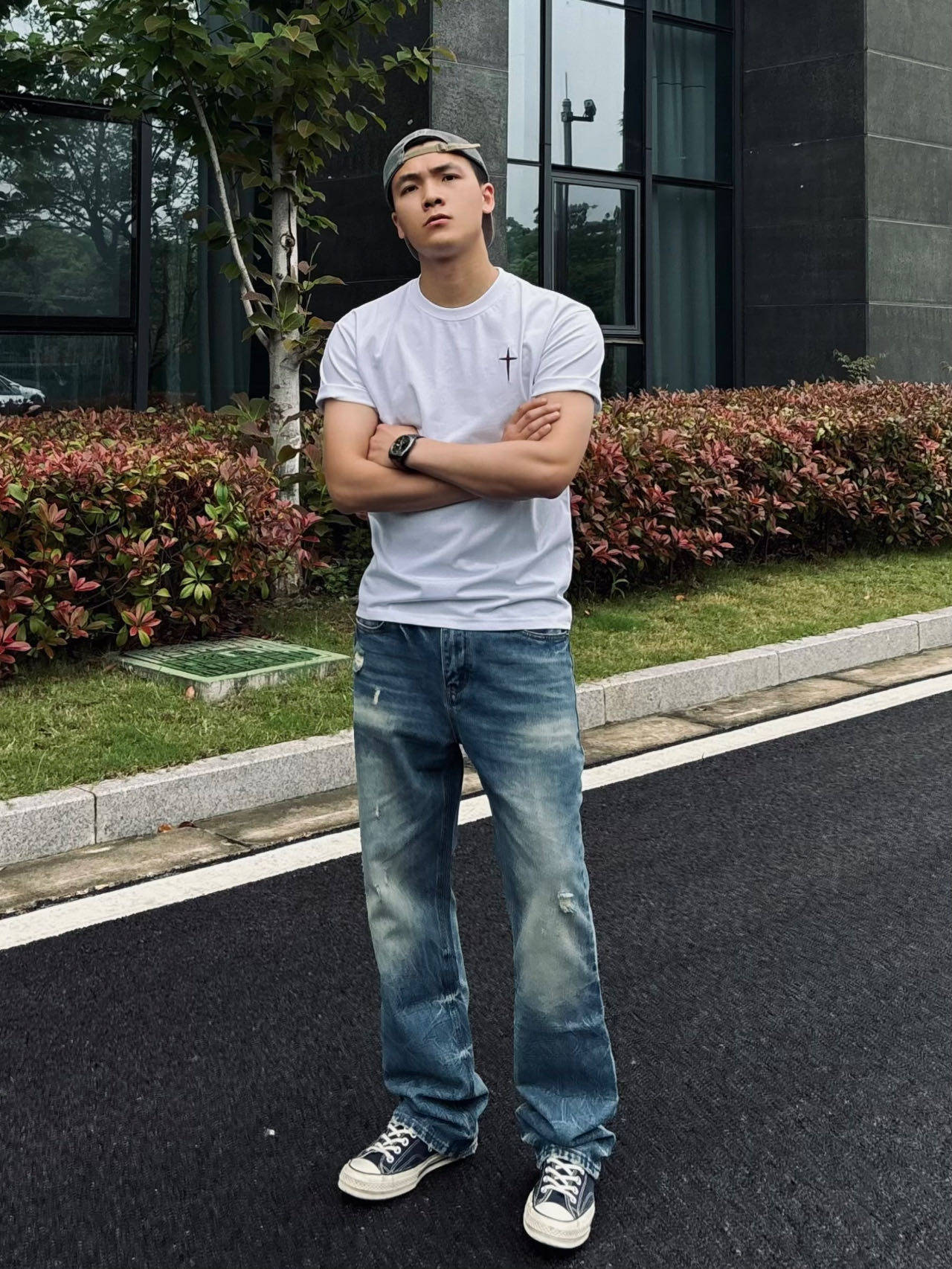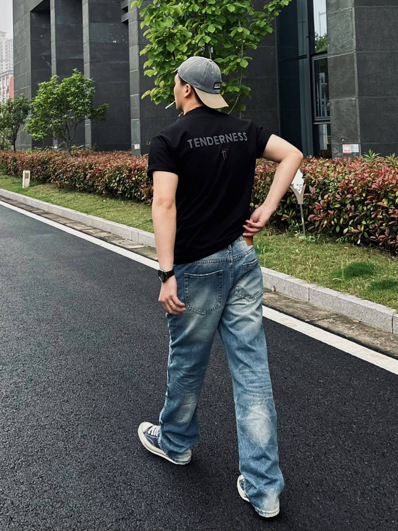 SOS春秋微喇水洗破坏牛仔裤美式高街百搭显瘦cleanfit牛仔长裤潮
