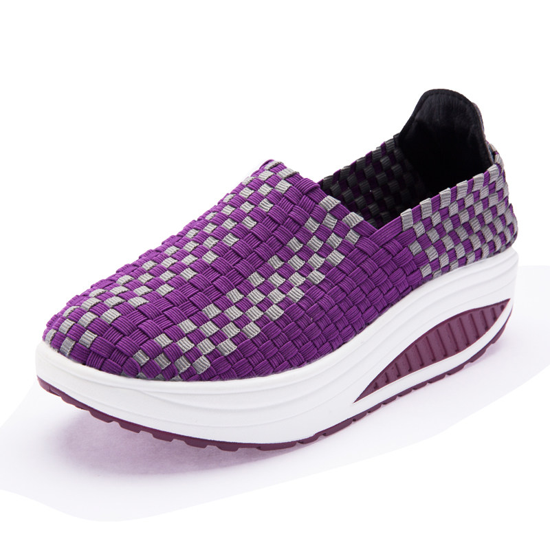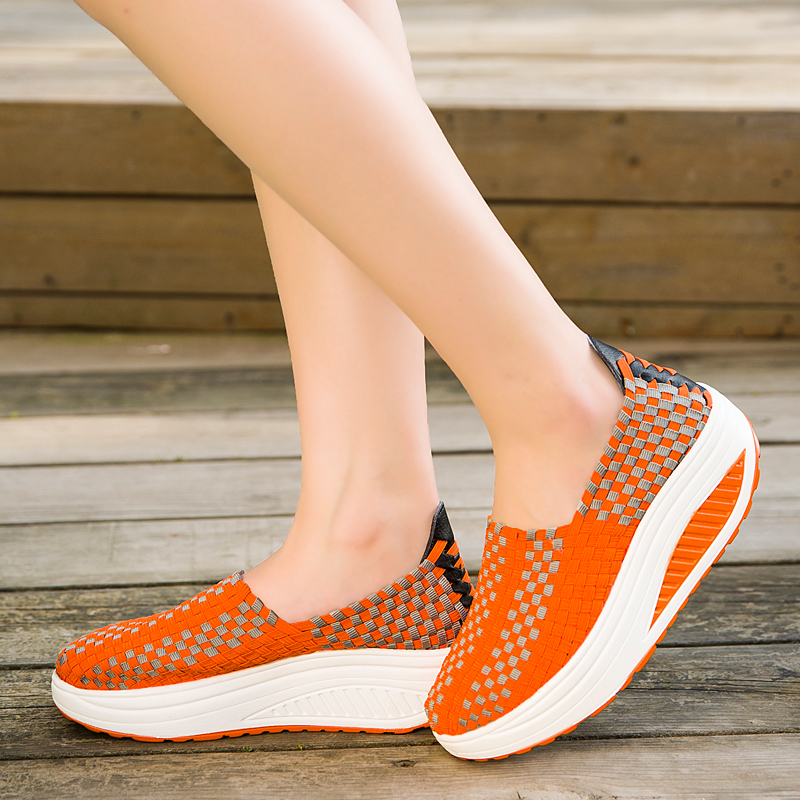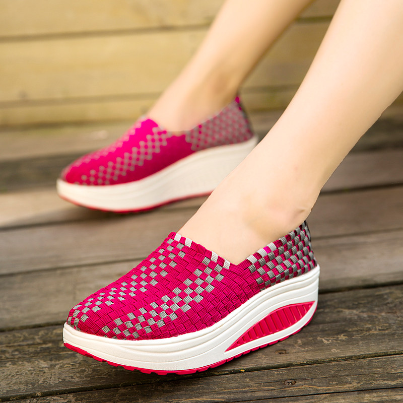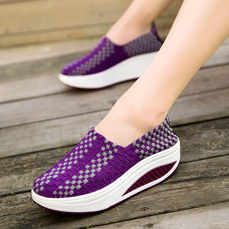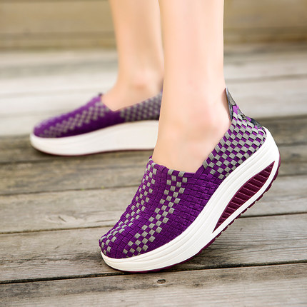 松紧编织鞋春季中老年人摇摇鞋女