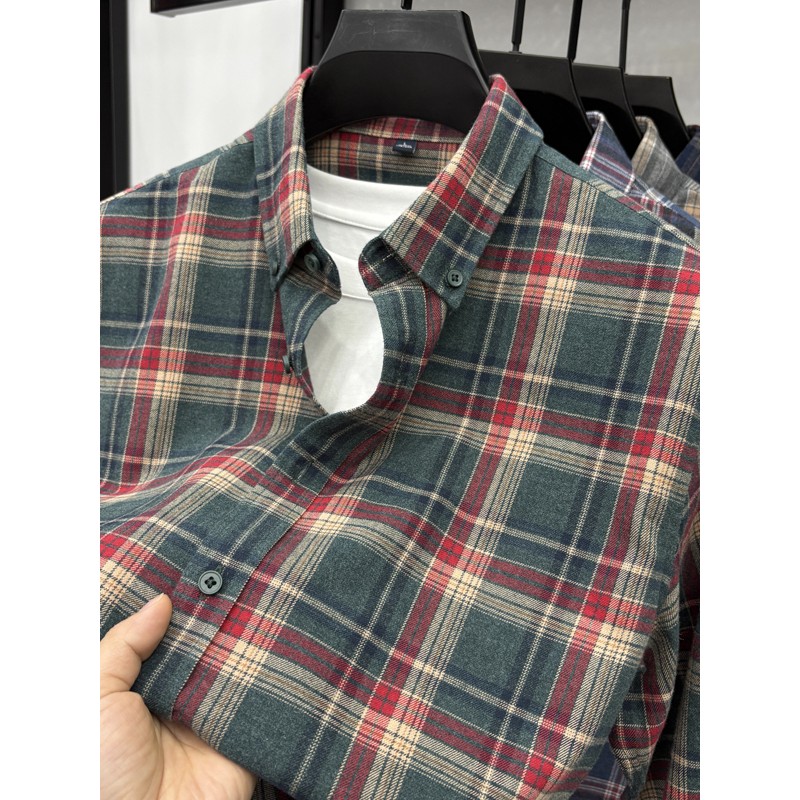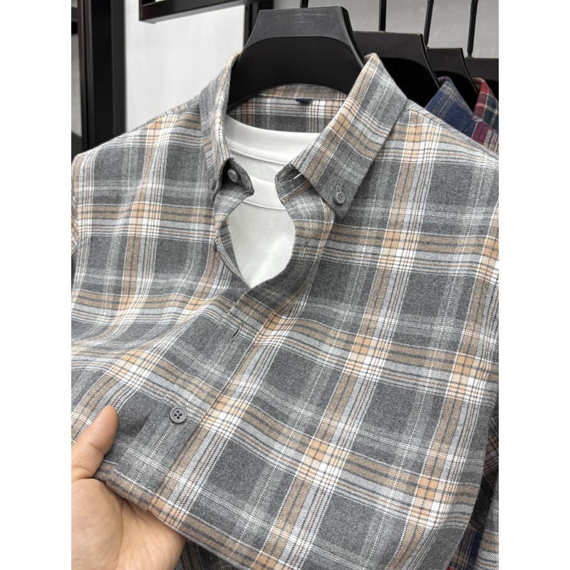 纯棉男士长袖衬衫磨毛格子衬衣中年爸爸装宽松休闲格子衬衫上衣