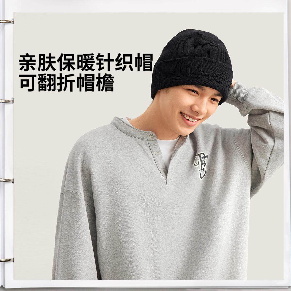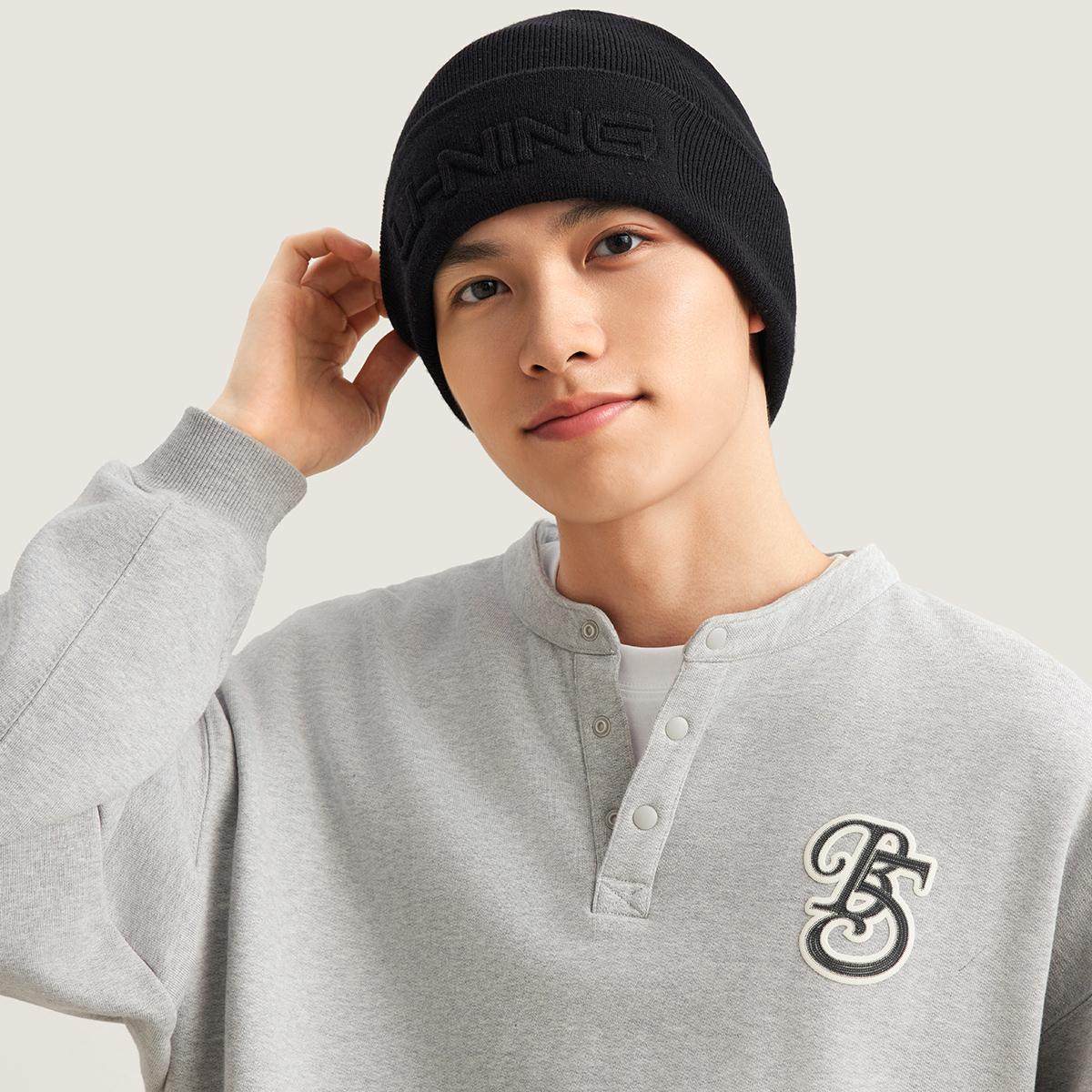 李宁正品运动生活系列男女同款时尚简约休闲保暖绒线帽AMZV033