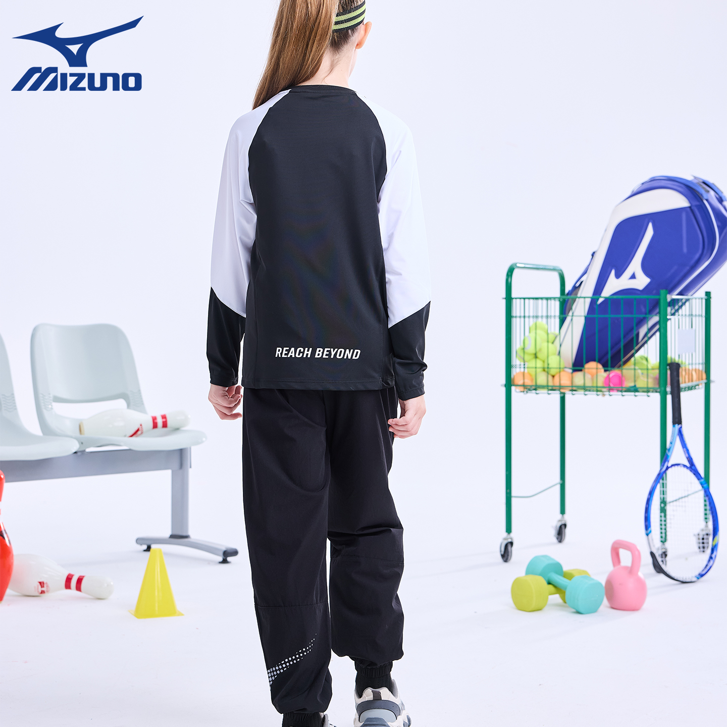 Mizuno美津浓儿童运动套装春秋新款户外训练服男女中大童长袖长裤