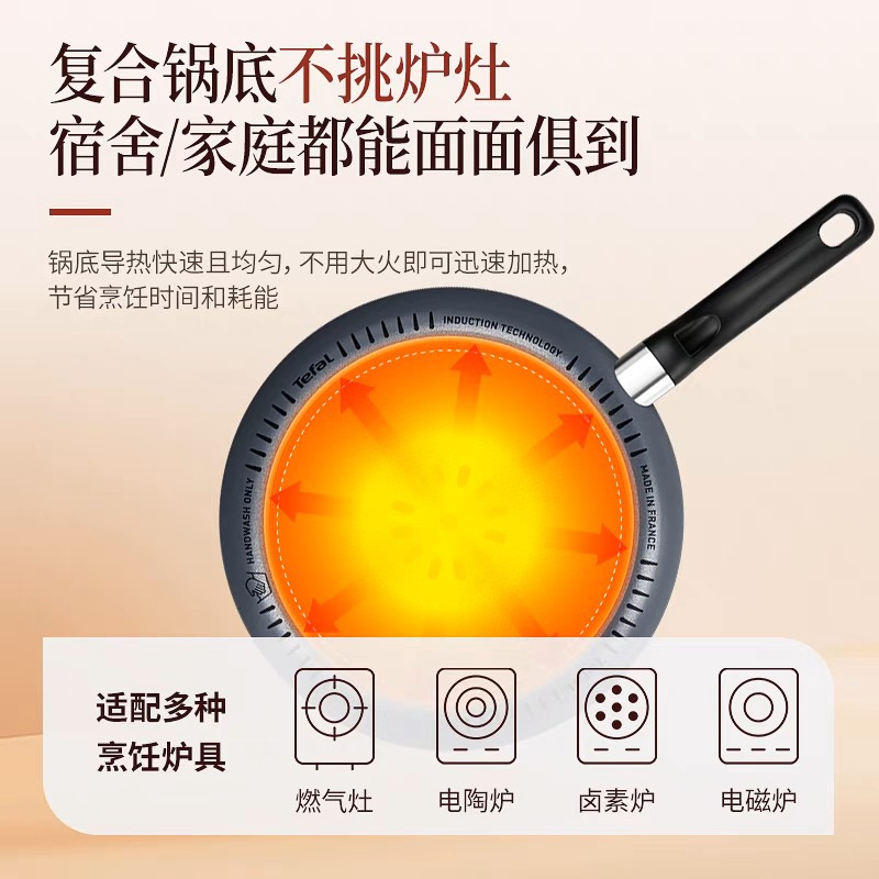 Tefal 特福钛轻巧不粘锅汤锅进口家用单柄平底炖煮锅小奶锅电磁炉