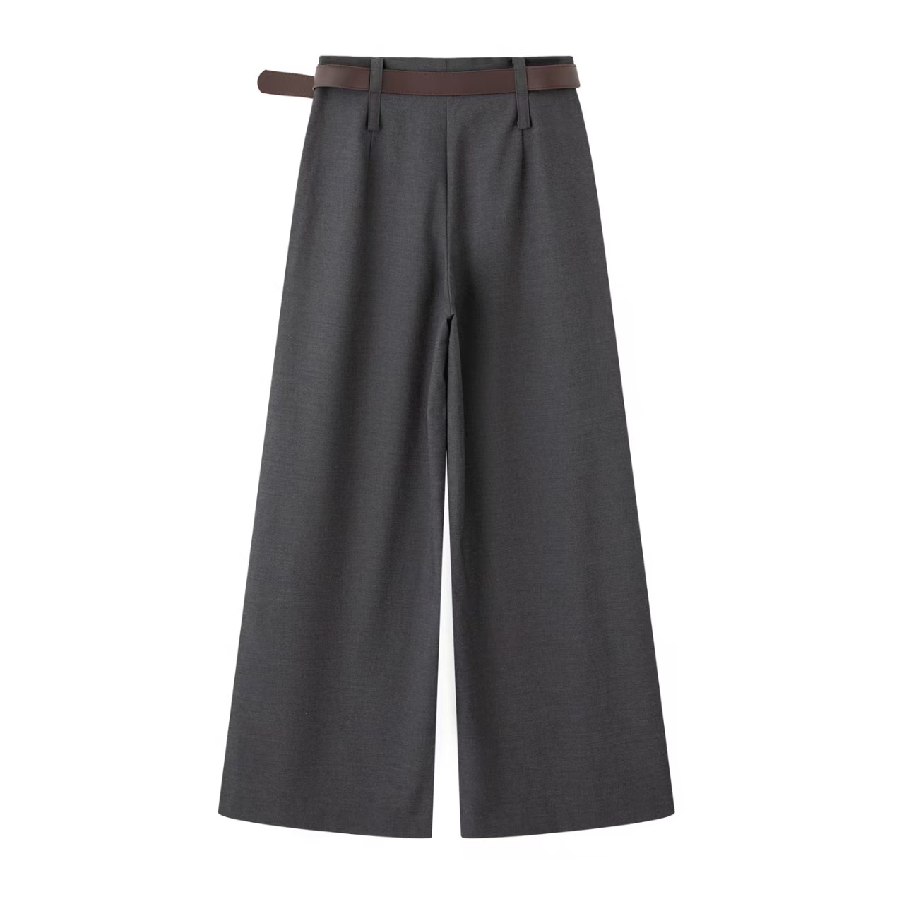 2025秋季新款时尚百搭复古高腰显瘦宽松休闲阔腿裤西装裤女