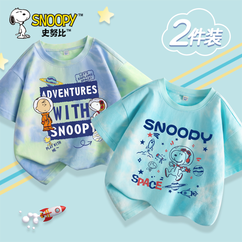 史努比儿童短袖t恤夏季男童纯棉上衣宽松透气扎染半袖男大童夏装