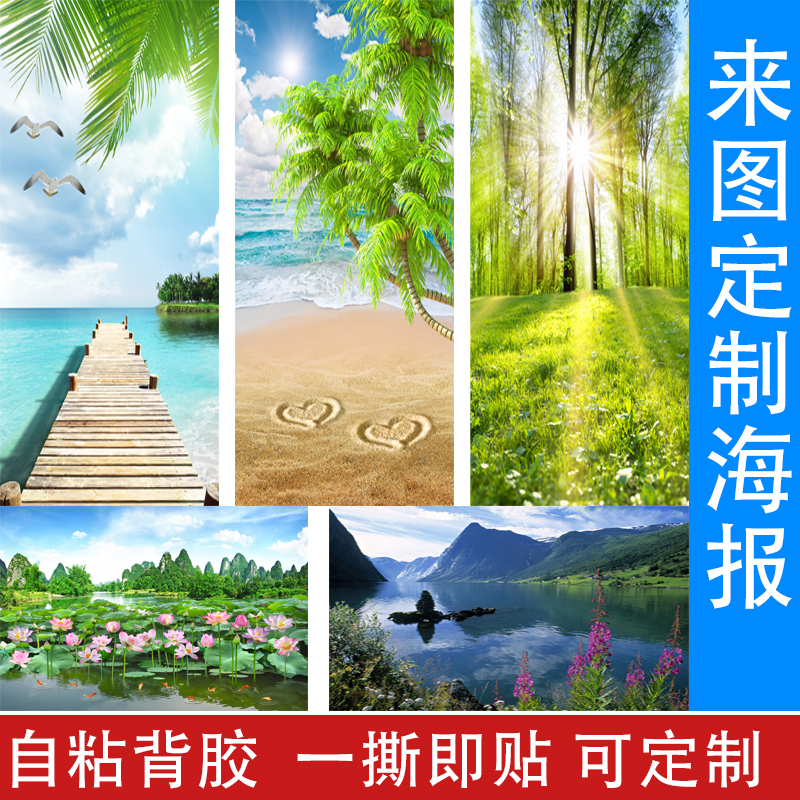 定制自然风景画自粘贴纸客厅卧室壁纸背景墙纸网红海报直播间墙贴