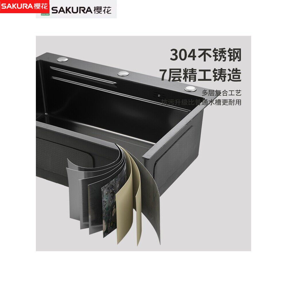 樱花水槽大单水槽蜂窝加厚304不锈钢厨房洗菜盆家用台下盆洗手碗