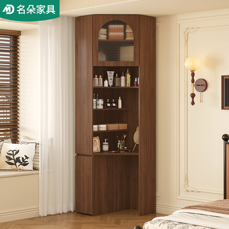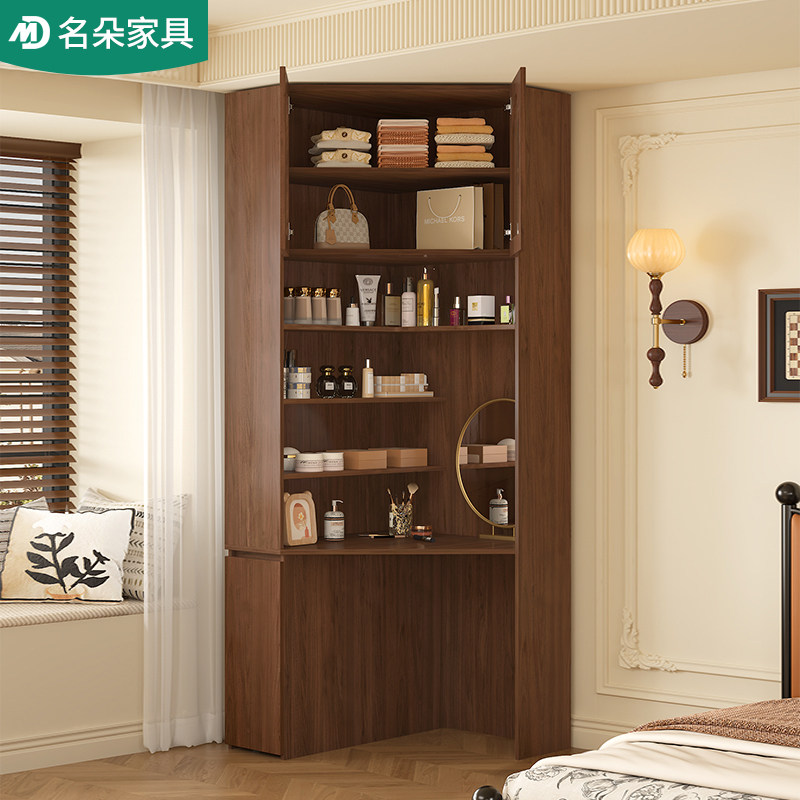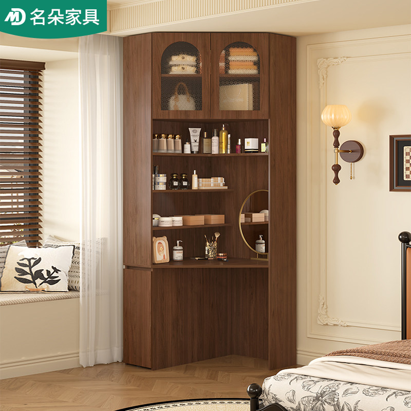 实木转角梳妆台中古风家用化妆桌储物柜卧室一体靠墙小户型5H31