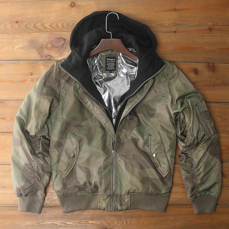 热反射秋冬新款超值外贸日单复古加厚MA-1飞行夹克男女棉服可拆帽