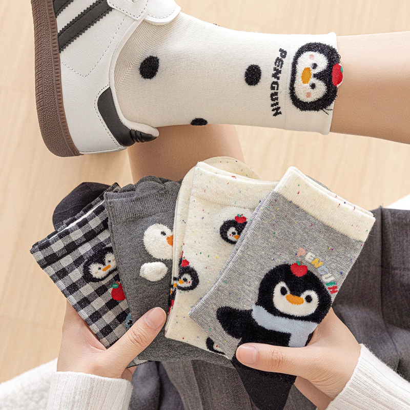 caramella袜子女中筒袜外穿潮女袜2025新款纯棉春秋爆款可爱企鹅