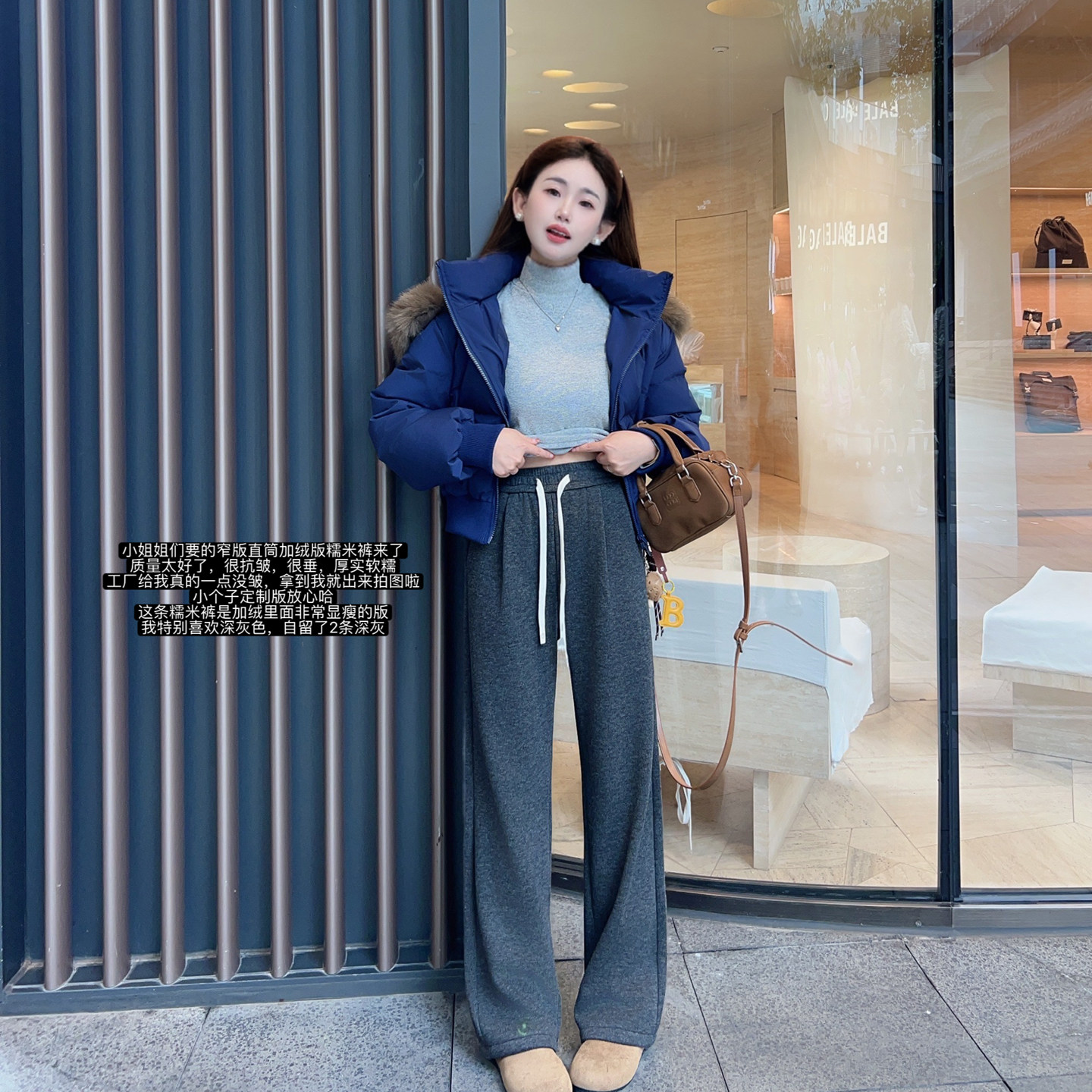 小小家 小个子小码窄版加绒绑带休闲裤加厚保暖软糯阔腿直筒裤子