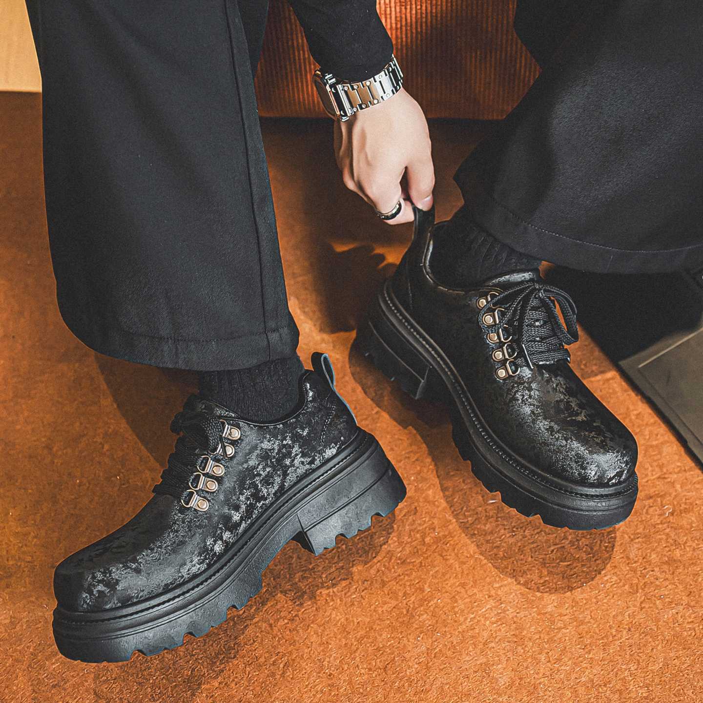 德比鞋男冬季复古商务休闲皮鞋发型师工作厚底增高大头工装马丁鞋