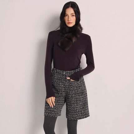 Deessesicile法式小香风格子粗花呢短裤优雅通勤简约五分裤西装裤