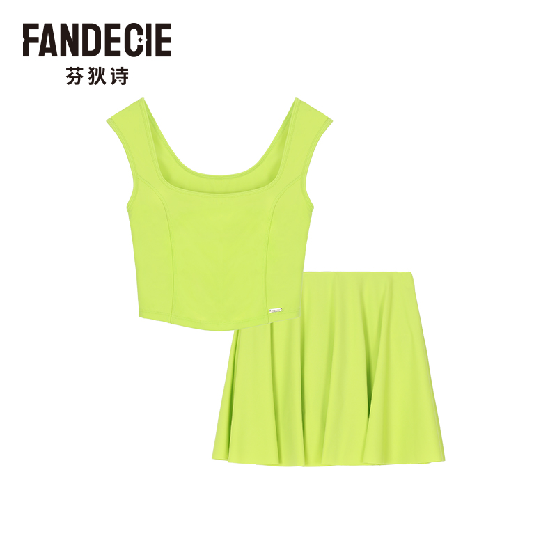 芬狄诗商场同款分体泳衣女带胸垫短款背心短裙修身游泳装FS00128