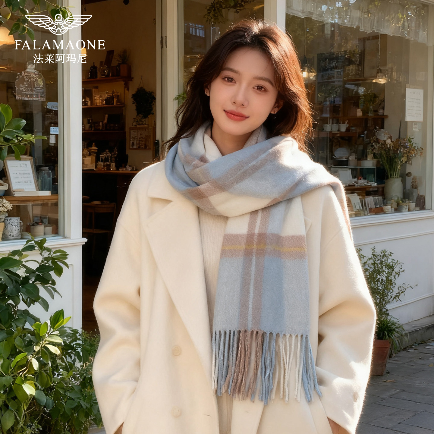 法莱阿玛尼正品100%纯羊毛围巾女2025新款秋冬季高级感披肩礼物