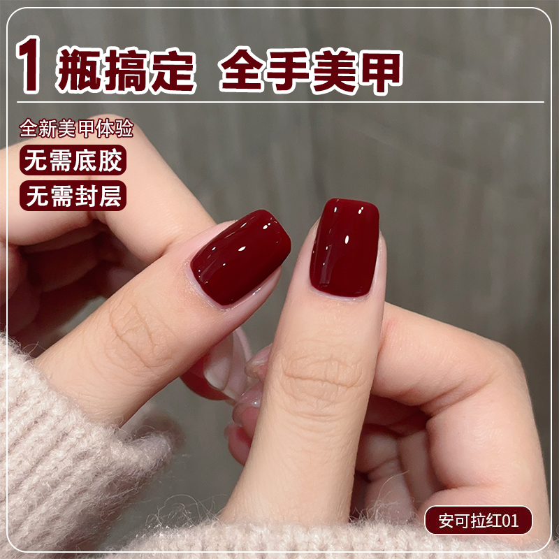 2025年新款五合一懒人指甲油胶显白车厘子红色指甲油无需底胶封层