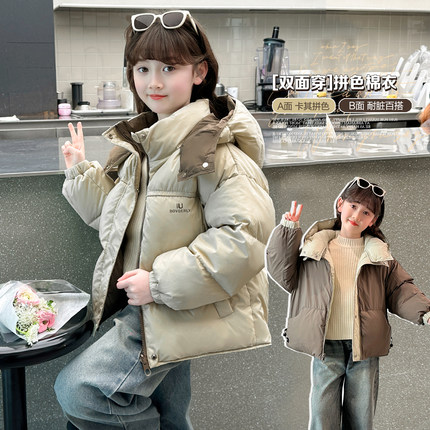 女孩棉服冬季洋气时髦女童加厚棉衣冬季儿童夹棉外套冬款大童棉袄