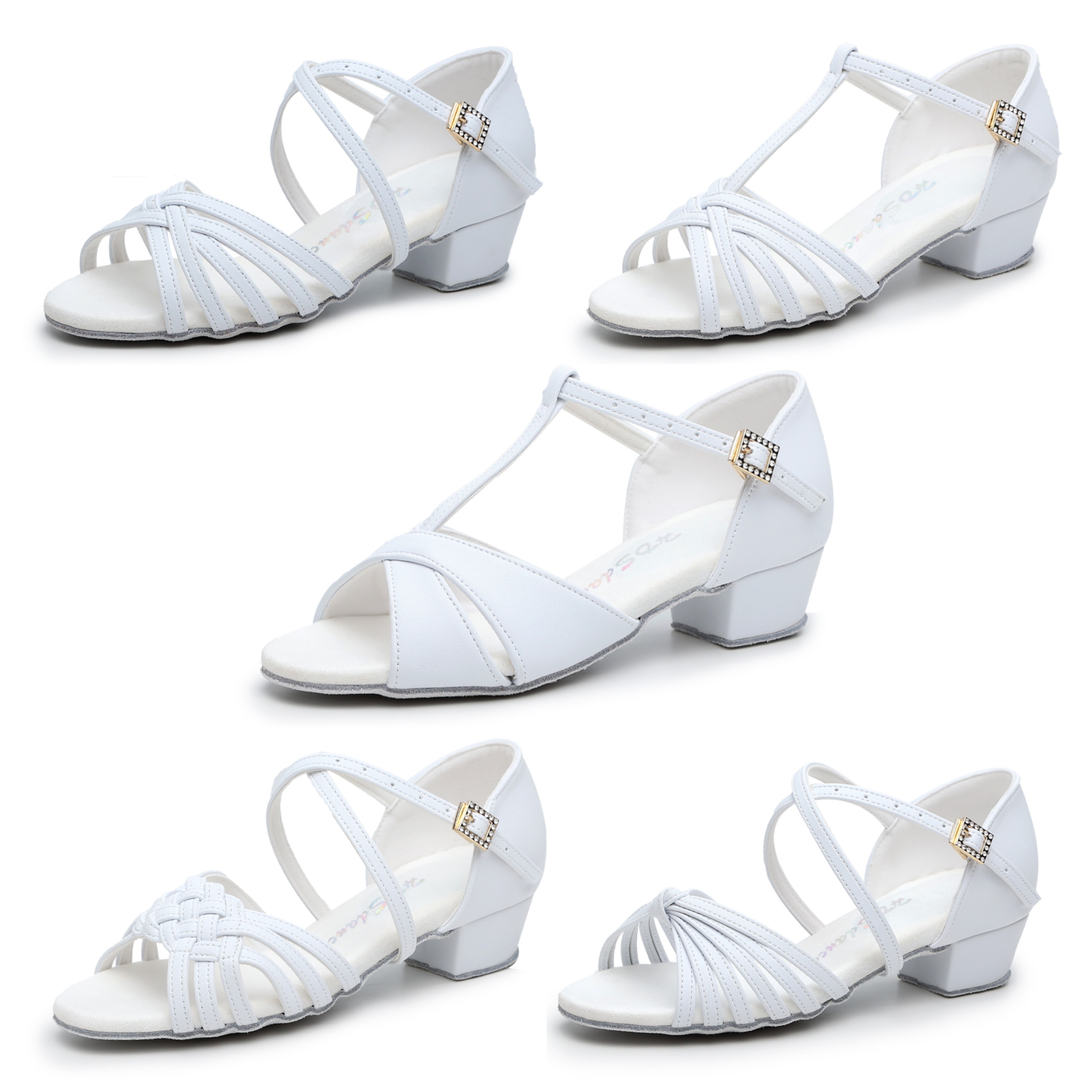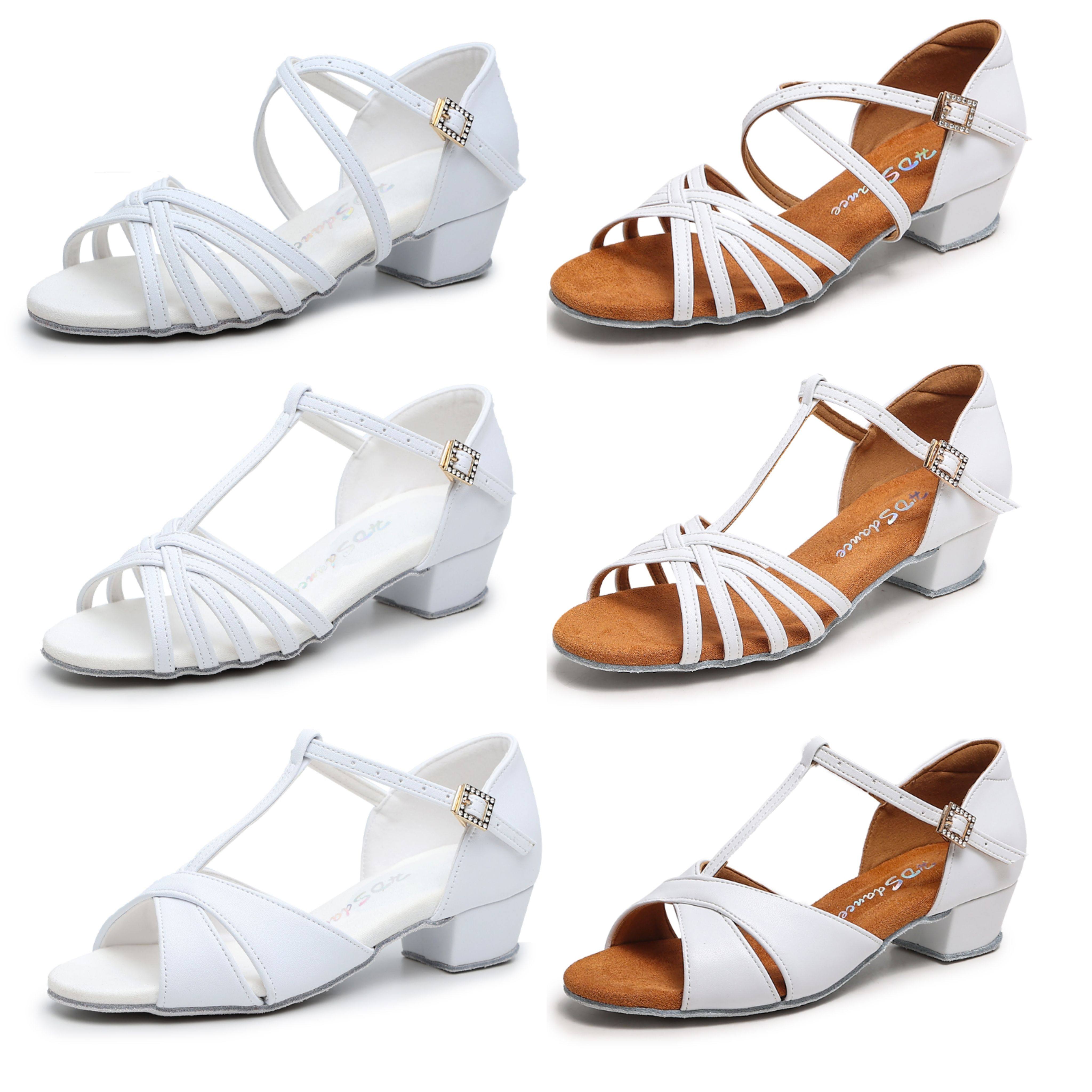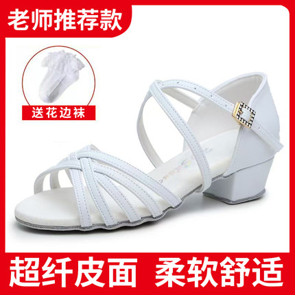 红谛莎新款白色儿童拉丁舞鞋皮面专业女孩软底夏季比赛舞蹈跳舞鞋